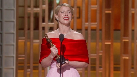Then Jessie Buckley walked to the microphone, and the room went somewhere else entirely. For a moment, nobody was managing anything.